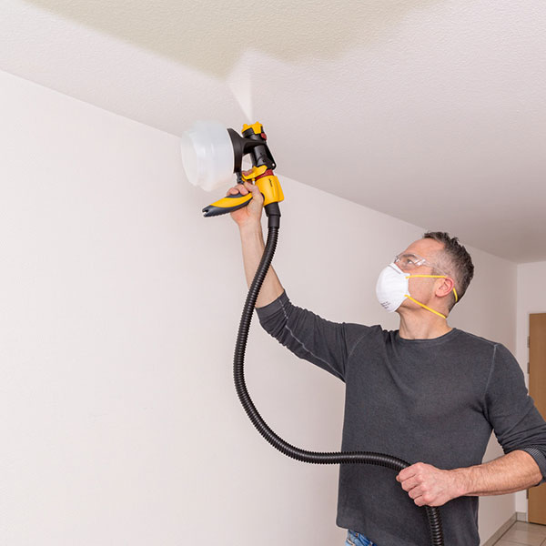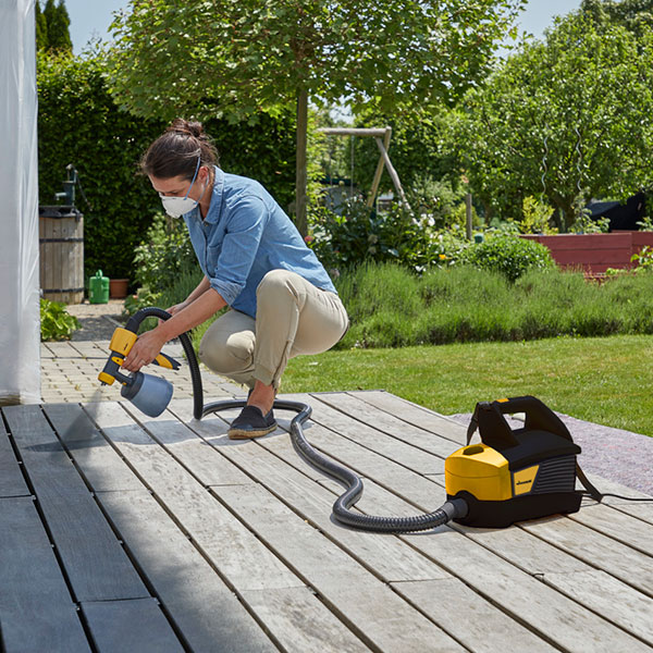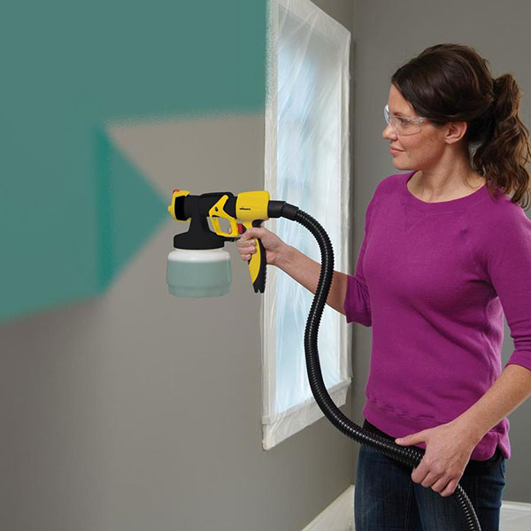 La Paint Ready Station pinta una pared 7 veces más rápido que el sistema tradicional de rodillo con menos esfuerzo. La turbina suministra aire a través de la manguera para pulverizar pintura sin diluir y se deja en el suelo para reducir la fatiga del usuario.